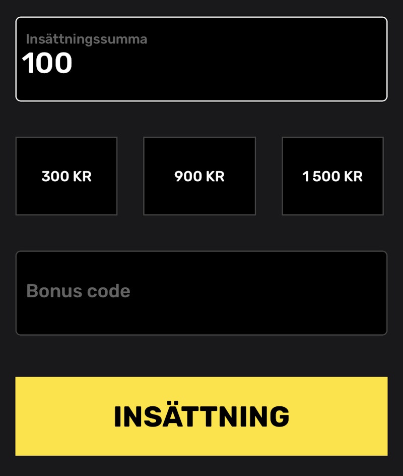 När du valt din betalningsmetod, i detta fall Apple Pay, väljer du hur mycket du vill sätta in och spela med. Se till att hålla dig inom ramen för vad som fungerar. Hos Hyper Casino är det minst 100 kronor insättning.