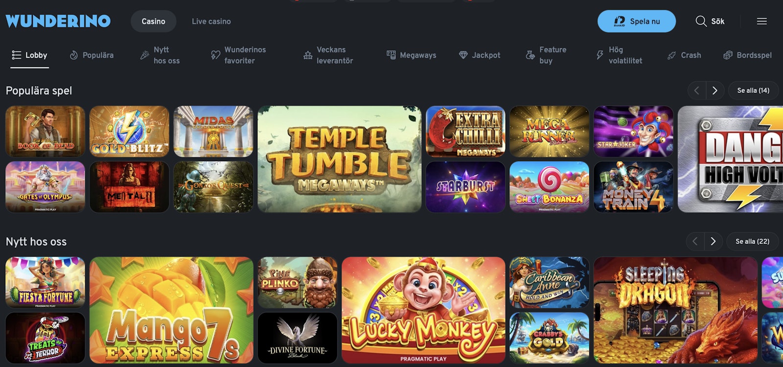 Känner du dig intresserad av att testa på Wunderino Casino? Då kan du gå till Wunderino och skapa ett konto. När du är inne på deras hemsida klickar du bara på "Spela nu" och därefter kan du komma igång med hjälp av BankID.