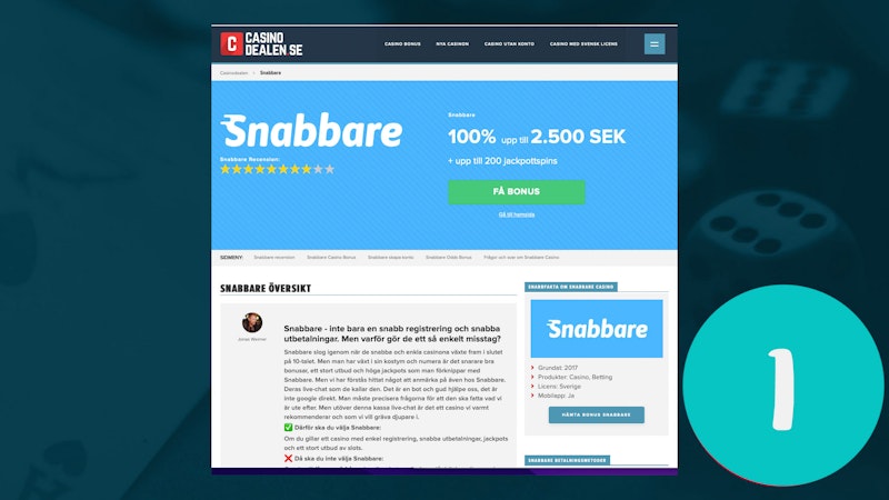 Vi har låtit vår casinoälskare Jonas Weimer djupdyka ner i Snabbare och deras casino. Här följer hans recension av casinot som skyter med snabb registering med BankID, snabba utbetalningar och ett stort utbud av slots. Men vad finns det mer?