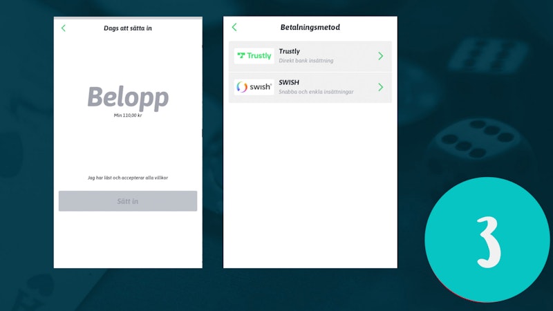 Du kan sätta in med Swish eller Trustly och ta ut med samma betalningsmetoder.