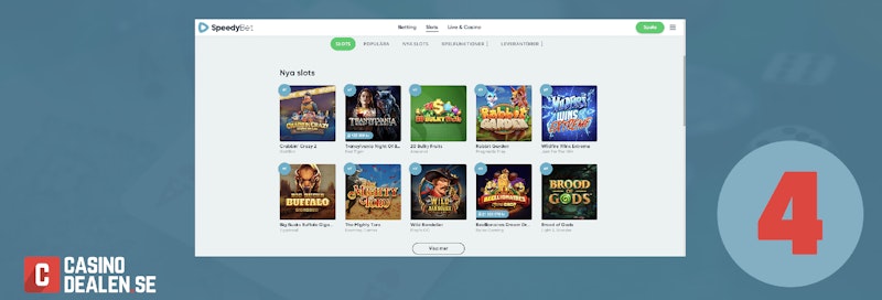 SpeedyBet är casinot för dig som gillar livespel och att kunna använda både Swish och Trustly. Man har kanske inte det största utbudet av spel men många leverantörer och man pockar hela tiden in nya spel. Själv gillar jag när man har exklusiva spel vilket SpeedyBet levererar med jämna mellanrum. SpeedyBet kan också vara ett alternativ för dig som ibland vill placera något oddsspel också eftersom man här har en av de bästa leverantörerna i Kambi.